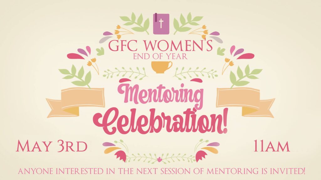 On May 3rd after service, all women who were a part of this past season’s mentoring program are invited for a luncheon where you will gather to celebrate what God did in and through this mentoring process. If you are interested in next year’s mentoring program you are also invited. See you there!
